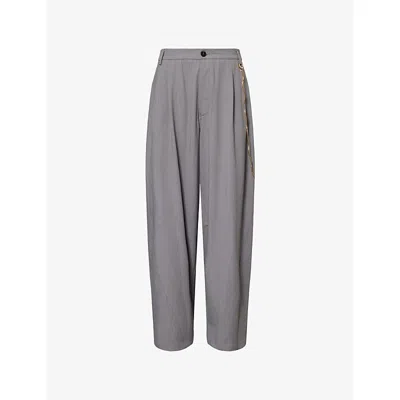 Womens Light Grey Phebe Chain-adorned Wide-leg Wool-blend Trousers In Gray