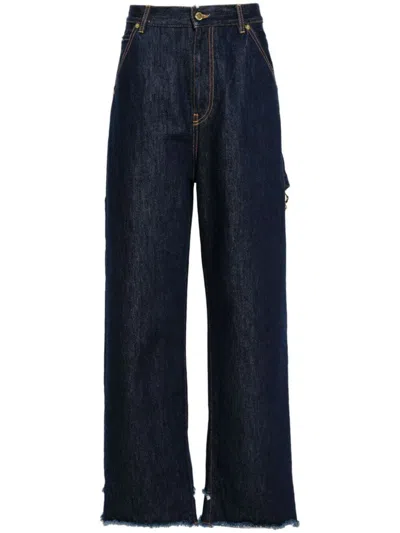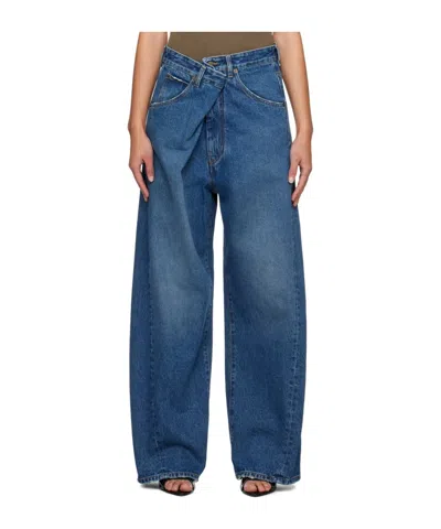"lisa" Belt Adorned Loose Fit Denim In Blue