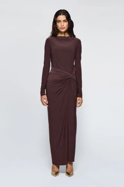 Maxi Dress With Asymmetric Seam Detail In Brown