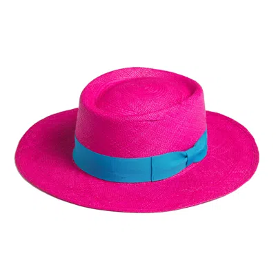 Pink / Purple Dasmarca Baker Wide Brim Summer Genuine Panama Straw Porkpie Hat For Women - Fuscia In Multi