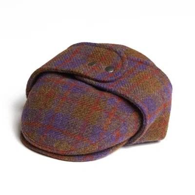 Men's Pink / Purple Logan Grape Tweed Wool Checks Italian Cap With Earflaps Trapper In Pink/purple
