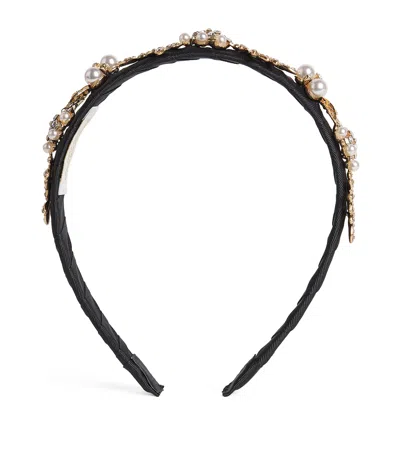 Kids' Diamanté And Faux Pearl-embellished Headband In Black