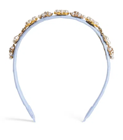 Kids' Diamanté And Faux Pearl-embellished Headband In Blue