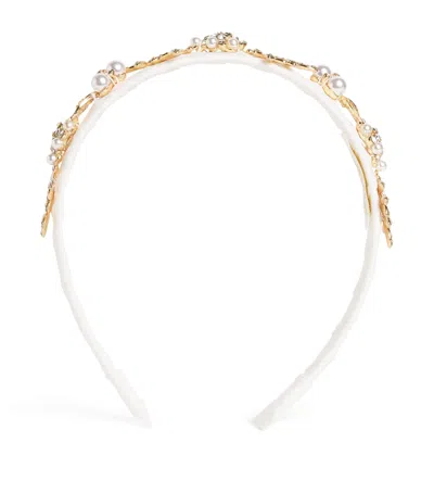 Kids' Diamanté And Faux Pearl-embellished Headband In Gold