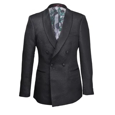 Men's Kensington Double Breasted Shawl Lapel Jacquard Blazer - Black