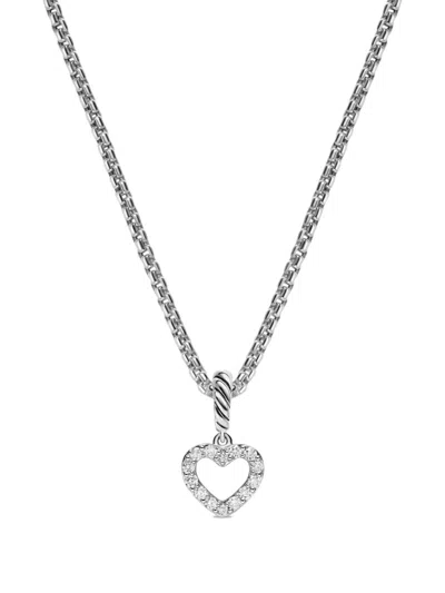 Sterling Silver Petite Cable Heart Diamond Necklace In 银色