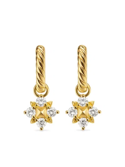 18k Yellow Gold And Sterling Silver Petite Helena Diamond Earrings In 银色