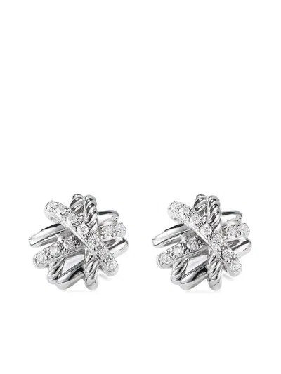 Women's The Crossover Collection Stud Earrings In 18k Yellow Gold With Full Pavé Diamonds