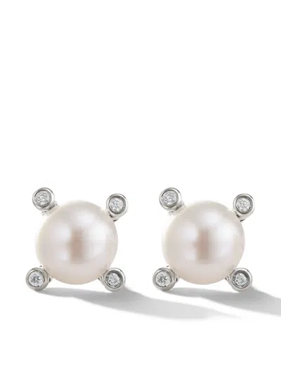 Sterling Silver Cable Collectibles Pearl Diamond Stud Earrings