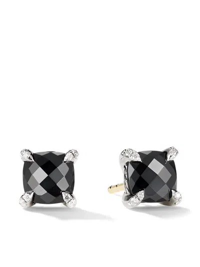 Sterling Silver Chatelaine Onyx And Diamond Stud Earrings In Black