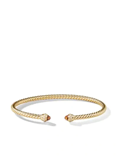 18kt Yellow Gold Cable Spira Peridot And Diamond 3mm Cuff In 88amcdi