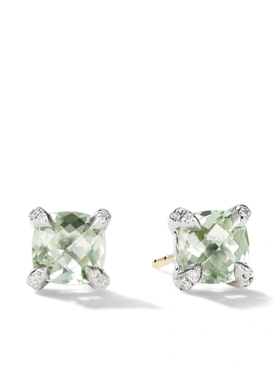 6mm Sterling Silver Chatelaine Prasiolite And Diamond Stud Earrings In Green