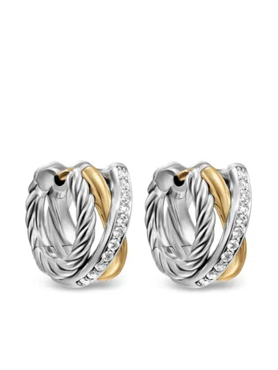 18kt Yellow Gold Crossover Three Row Diamond Hoop Earrings In Silber
