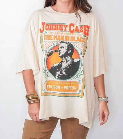 Johnny Cash Guitar Weekend Short Sleeve Top In Vintage White