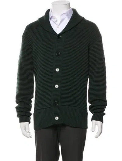 Pre-owned Merino Wool Striped Cardigan In Green