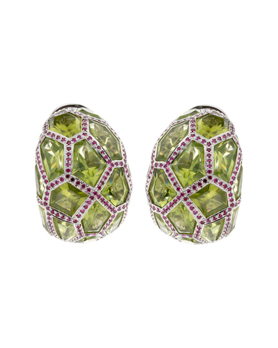 18k White Gold Ruby And Peridot Earrings Dg05-080425 In Green