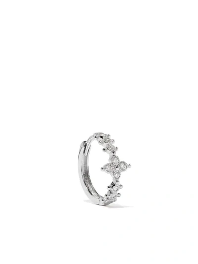 18kt White Gold Darling Flower Single Mini Hoop In Silver