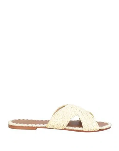 Woman Sandals Cream Size 8 Textile Fibers In Neutral