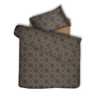Brown / Blue Sateen Bed Linen Set Jaquard Cinnamon Uk Double, Us Full In Multi