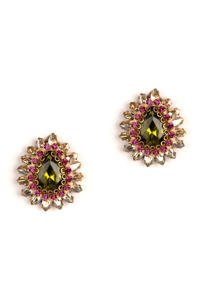 Calluna Crystal & Beaded Heart Drop Earrings In Pink