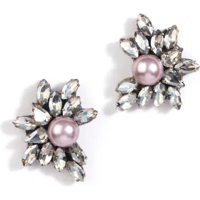 Sahana Imitation Pearl Stud Earrings In Gunmetal