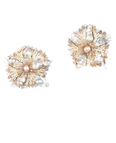 Anise Bead And Shell Linear Drop Earrings In Pink/gold