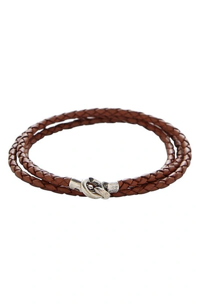 Men's Woven Leather Wrap Bracelet In Saddle