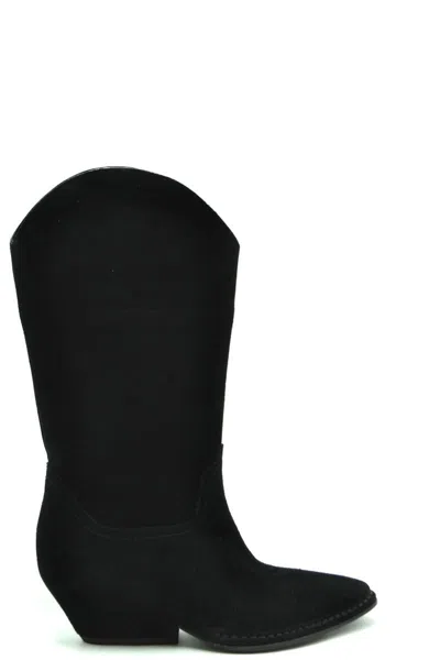 Leather Pointed-toe Boots In Black
