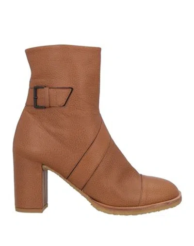 Woman Ankle Boots Tan Size 11 Leather In Brown