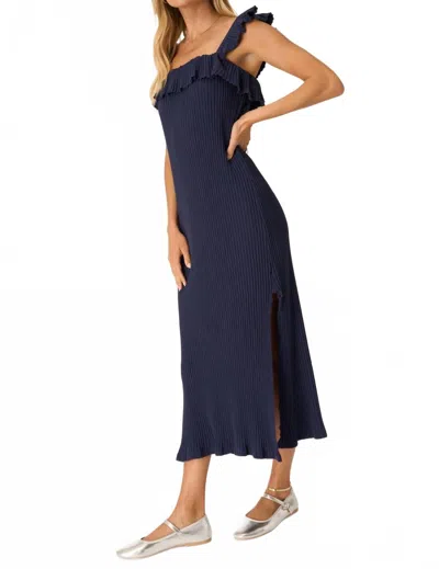 Mona Ruffle Sleeve Rib Dress In Navy In Blue