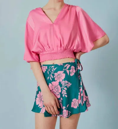 Satin V-neck Top In Pink