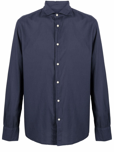 Spread-collar Cotton Shirt In Blue