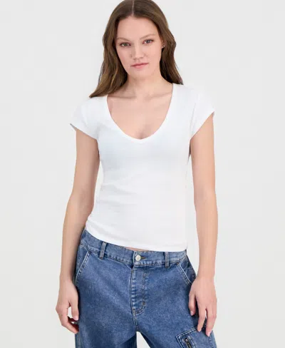 Juniors' V-neck Cap-sleeve Cotton T-shirt In White