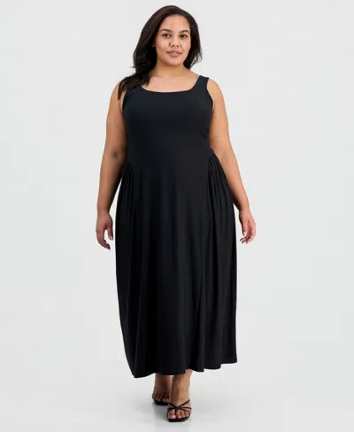 Trendy Plus Size Sleeveless Scoop-neck Dress In Black