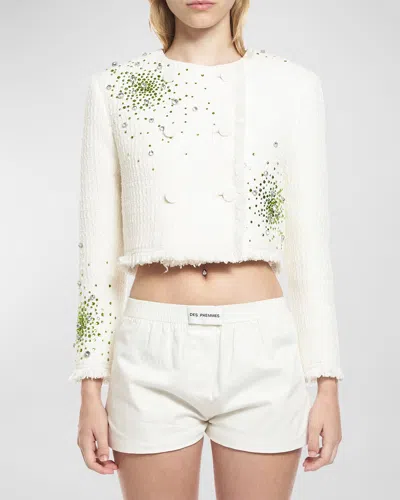 Woman Mini Dress Cream Size 4 Polyester, Viscose, Glass, Acrylic In White