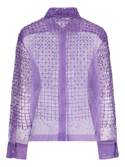 Pom Pom-embellished Silk Boyfriend Top In Pink