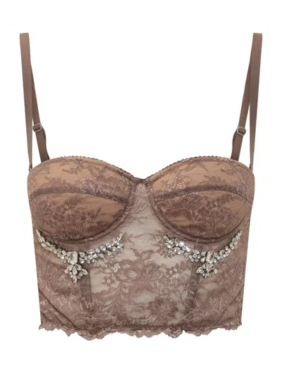 Multicolor Bustier Style Top With Front Crystal Embellishments And All-over Striped Motif