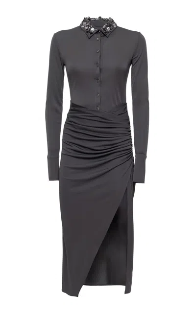 Embellished Cable Knit Polo Sweater In Irongrey
