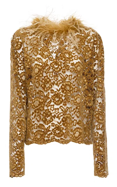 Des Phemmes Embellished Sheer Sweater With Puff Sleeves And Delicate Beading In Beige