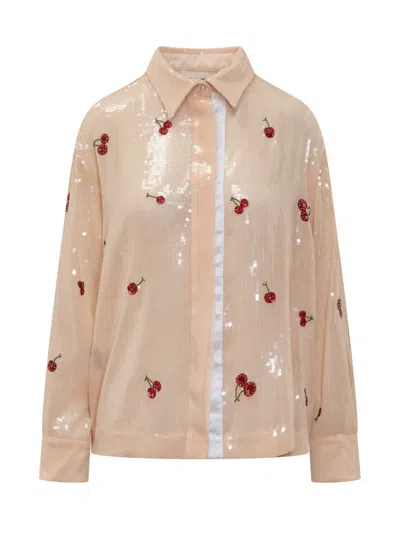 Green Top With Crystals Decorations On The Front In Cotton Woman In Neutral