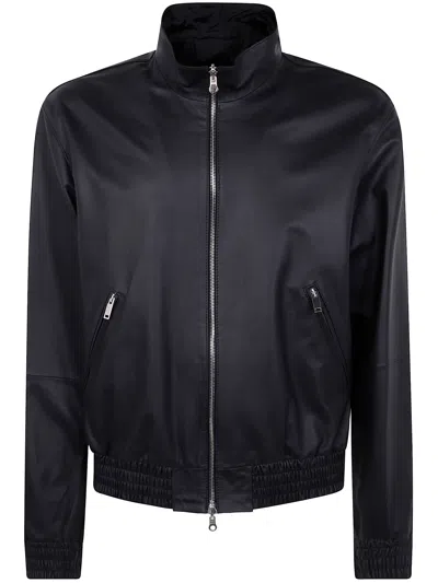 Leather Reversible Bomber Jacket In Black
