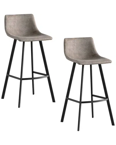 Leick Home Set Of 2 Upholstered Steel Base Microfiber Bar Stools