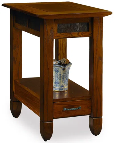 Leick Home Sibley Solid Wood Side Table With Drawer & Slate Tile In Brown
