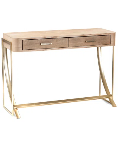 Lafoy Natural Brown Finished Wood And Gold Finished 2-drawer Console Table