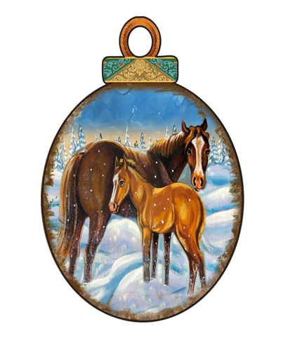 2 Piece Horses Scenery Wood Ornament Set In Multi Color
