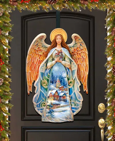 Guardian Angel Christmas Door Hanger Wooden Door Decor G. Debrekht In Multi Color