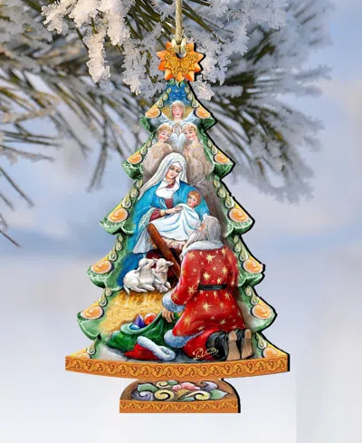 Adoration Nativity Tree Christmas Wooden Ornaments Holiday Decor Set Of 2 G. Debrekht In Multi Color