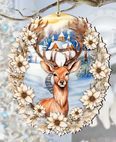 Majestic Forest Deer Christmas Wooden Ornaments Holiday Decor G. Debrekht In Multi Color
