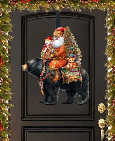 Santa Claus And Black Bear Christmas Door Decor Wooden Wall Decor G. Debrekht In Multi Color
