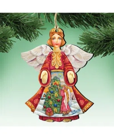 Christmas Tree Angel Wooden Ornament Set Of 2 In Multi